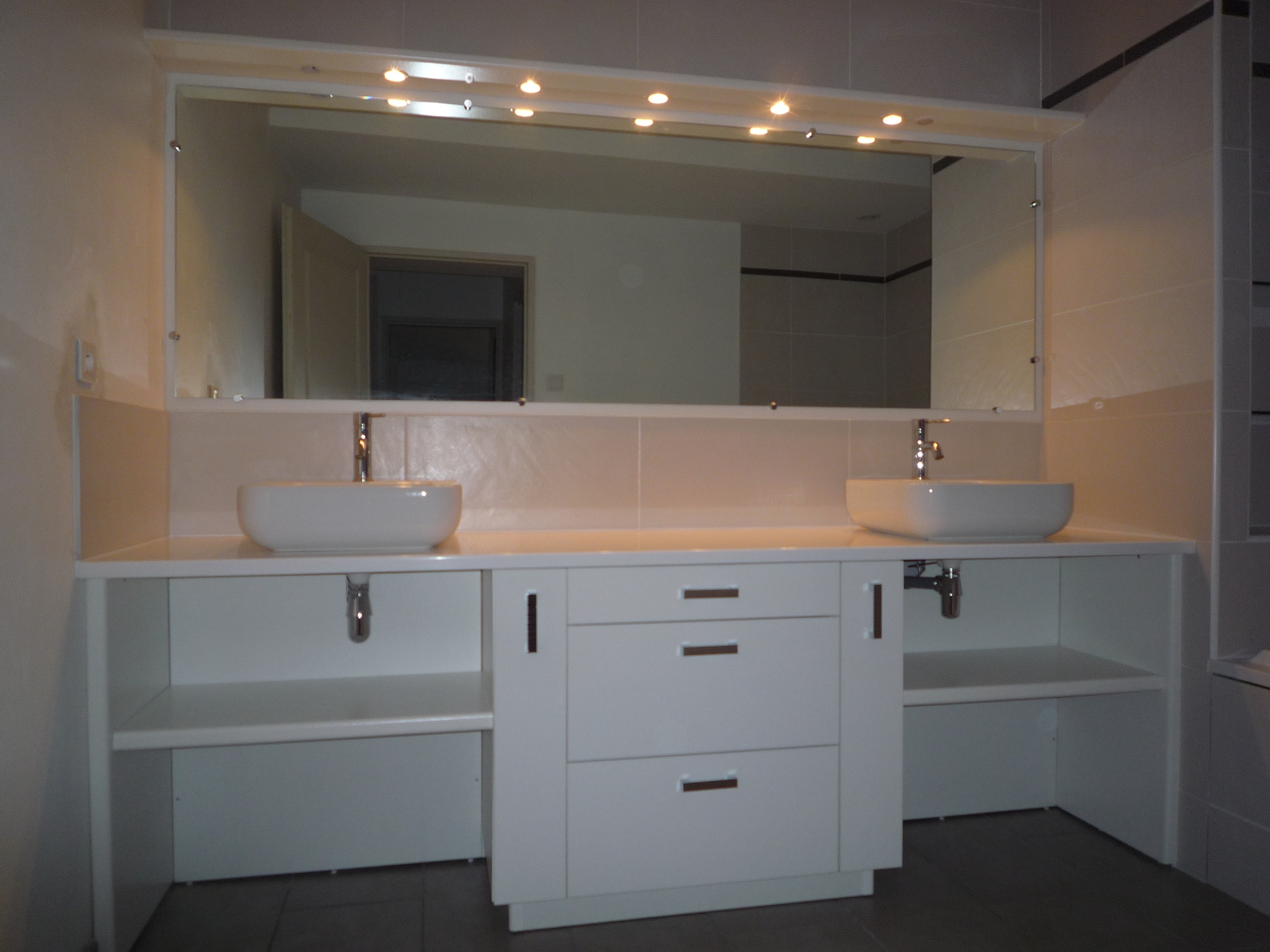 Cuisine MALRIEU propose un service de vente livraison et installation ou rénovation d’ensemble d’ameublement pour salle de bain. De même que pour la cuisine, nous accordons un intérêt particulier à l’installation pour assurer longévité a votre achat. Des accroches solides, des joints propres évidemment… le raccordement de la vasque et sa robinetterie de salle de bain est compris. La pose de meubles de salle de bain fait appel à plusieurs de nos compétences d’installation de cuisine. Ci dessous vous trouverez quelques illustrations d’installation. Les variation possible de couleurs de façade et de formes de vasques s’accorderons avec vos souhaits décoratifs les plus hétéroclites. Différents système d’éclairage LED intégré à un miroir illuminerons avec sobriété l’ensemble. Du format simple à familial, le meuble de salle de bain s’adapte au besoin de votre maison pour que tous en profite.